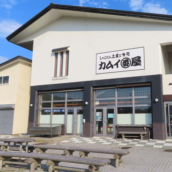 まずは「カムイ番屋」。お土産が売っていて、お食事をする場所もあります。丼モノや麺類やカレーなど。ランチにぴったりですね。